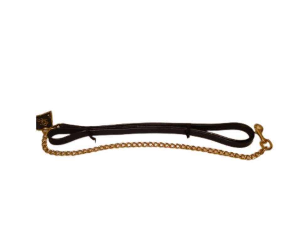 Leather lead rope with luxurious brass chain.